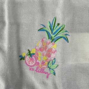 Lilly Pulitzer Printed 4 Piece Cocktail Napkin Set Pineapple Flamingo Floral Print.