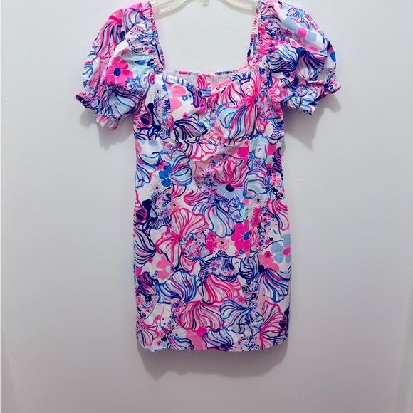 Lilly Pulitzer Puff Sleeve Colorful Peasant Dress Women’s Size 2