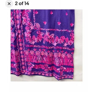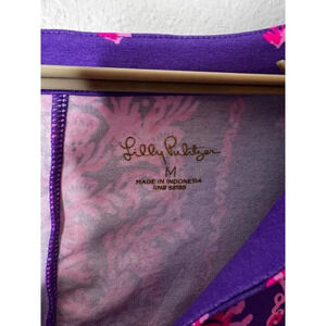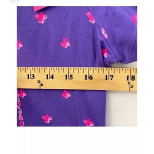 Chic purple dress with vibrant pink patterns. Ideal for casual outings. Comfortable and stylish.