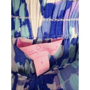 The Lilly Pulitzer Quincy Serene Blue Tropi Call Me Engineered Dress in Size Small is a stylish and vibrant dress perfect for various occasions such as travel, weddings, parties, and casual wear. Made of lightweight rayon material, the sleeveless dress features ruffle accents, a pullover closure, and a short length, making it ideal for warmer seasons like summer and spring. The dress exudes a beachy, nautical, colorful, and tropical theme with accents of Hawaiian and preppy styles, making it a versatile piece for any wardrobe.