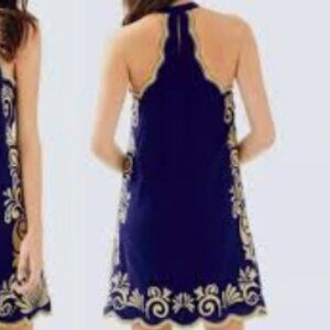 Lilly Pulitzer Quinn Dress True Navy Gypset Swirl Gold