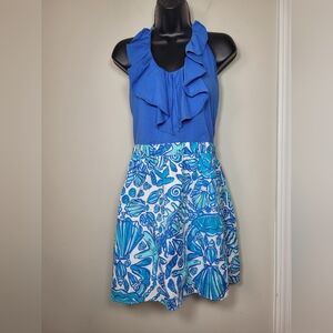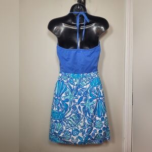 🌞Lilly Pulitzer Quinn Halter Dress Blue Sea Shells sz L