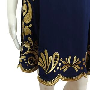 Lilly Pulitzer Quinn Halter Swing Dress Size XXS Navy Blue Gold Embroidery Lined