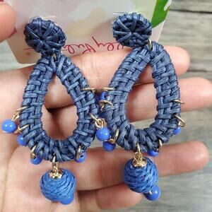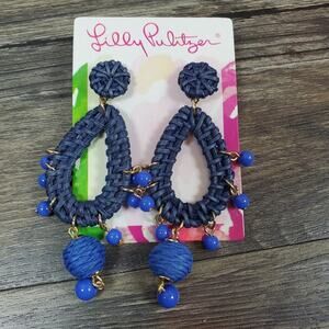 Lilly Pulitzer Raffia Earrings Alba Blue Chandelier Boho Casual Vacation NEW