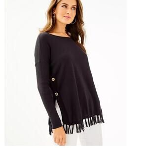 Lilly Pulitzer Ramona fringed hem lightweight button closed sweater woman sz S