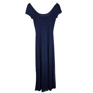 Lilly Pulitzer Ramsay Navy Blue Pier Stripe Knit Maxi Dress S Side Slit Nautical