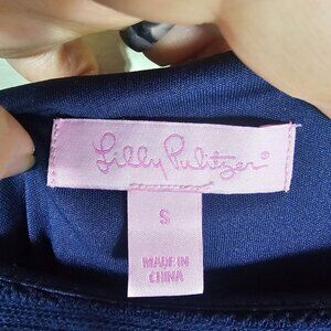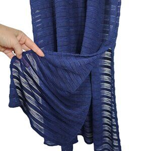 This elegant Lilly Pulitzer dress offers a chic silhouette with its blue knit fabric and subtle stripe design. The maxi length, long side slits, and scoop neckline provide a sophisticated yet comfortable fit. Ideal for various occasions, its lightweight polyester material ensures ease of movement.