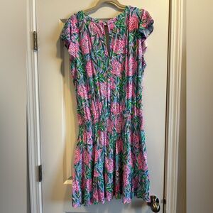 Lilly Pulitzer Ravi romper. Worn once. Cold water washed line dried. P-p 23” waist 15” unstretched. Like new. Non smoking home. Pic with tag is what the colors really look like.