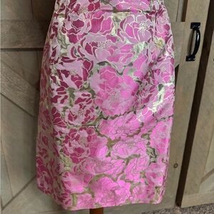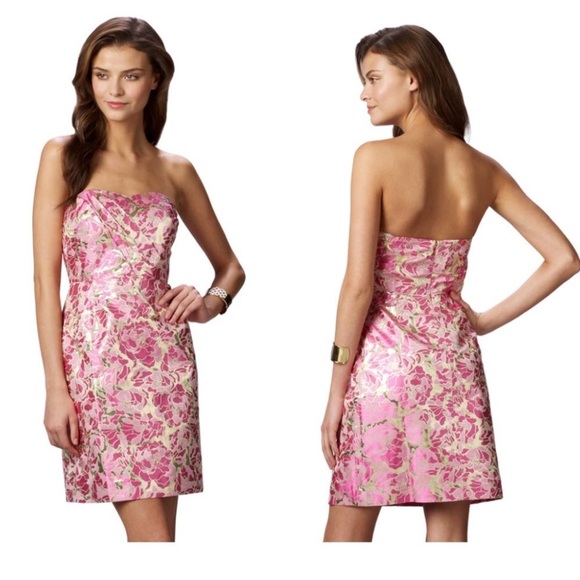 Lilly Pulitzer Raya pink and gold strapless silk blend dress Size 6