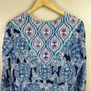 Lilly Pulitzer Renato Silk Tunic Top Blouse Shirt Size Small Snap To It Sequin