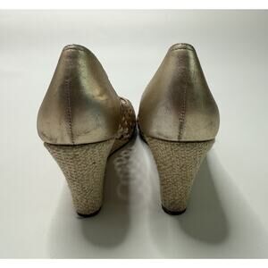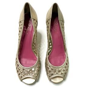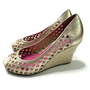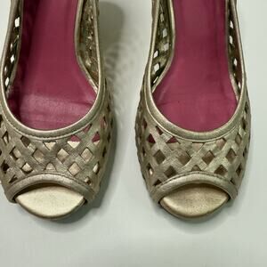 Lilly Pulitzer Resort Chic Gold Leather Basketweave Peep-Toe Wedges Sandals 7M