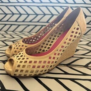 Lilly Pulitzer Resort Chic Ivory basket weave patent leather platform wedge size 9.5