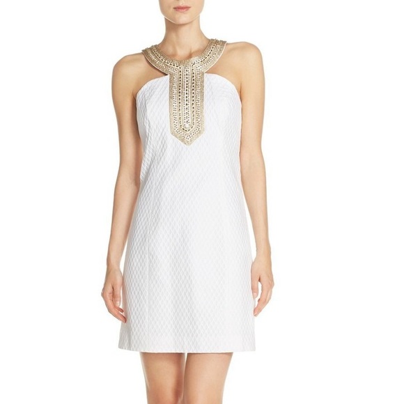 Lilly Pulitzer Resort White Adelina Shift Dress with Gold Accents Size 6