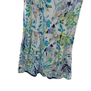 Made from soft and breezy jersey fabric in a bright Lilly print, the Jarrett Romper is a must have daytime look. This all in one outfitter features an easy scoop neckline, faux wrap skirt, and colorful pattern allover. Matching print undershort. Sleeveless. Elasticized waist. Pulls on. Has stretch. Rayon / spandex. Hand wash. 002710. In preowned condition. This style originally had tassel details, these have been removed. Not noticeable when worn, shown in photos 7&8, lace is still there, just no tassels. Shown on the model to show overall fit but again, no tassels.