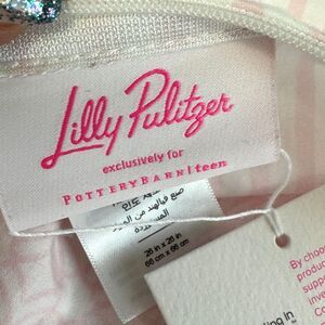 This is a new with tags item. The Lilly Pulitzer Reversible Bamboo Butterfly Euro Pillow Cover brings tropical vibes to your decor. It can be used on a bed or sofa just alike. The 100% cotton percale reverses from a bamboo pattern to pink stripes. The cotton is both durable and offers machine-washable convenience. Imagined exclusively for Pottery Barn Teen by Lilly Pulitzer. Measures 26x26" with a zip closure.