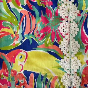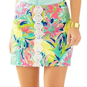 Lilly Pulitzer Rhea Skort Skirt in Casa Banana Print Lace Trim down the center front Back button/zip closure