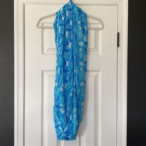 Gorgeous Ariel blue scarf from Lilly Pulitzer in What a Racket print. Scarf has one small pull (please see picture) but is in otherwise in excellent condition.