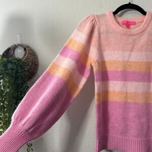 Lilly Pulitzer Ritza Striped Sweater In Lilac Wool Blend Barbiecore Coquette Soft Girl XS Extra Small Balloon Sleeve