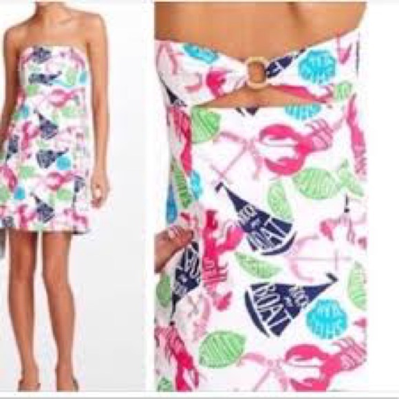 Lilly Pulitzer Rock The Boat Strapeless Dress with Gold Ring back size 2 EUC