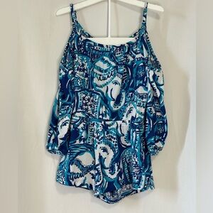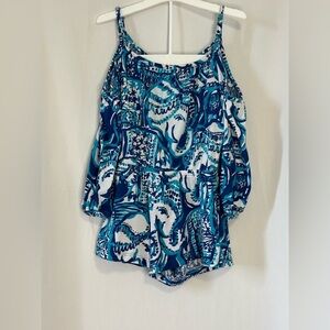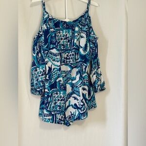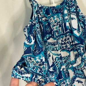 Beautiful Lilly Pulitzer girls toddler romper. Elephants on the design. Excellent condition, rarely worn and has no holes or stains. Has straps that adjust. Very light material. Arms are flowy and stretch on wrist.