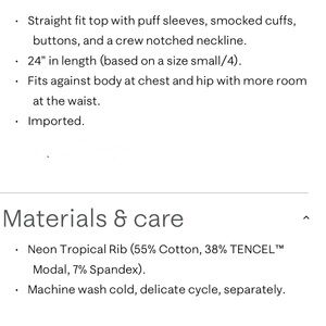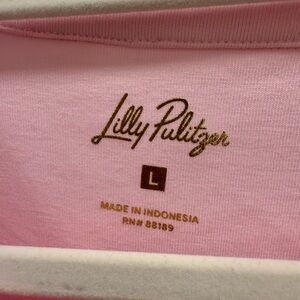 NEW Lily Pulitzer “Ronson Top, size Large. “Pink Muse” top with v-neck with gold button. Puffy sleeves with elastic at end of sleeve. Never worn! From a smoke free, pet free home.