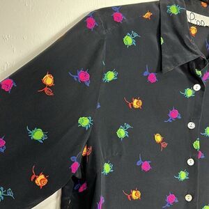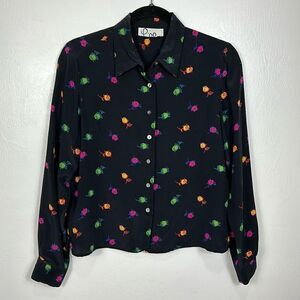 Lilly Pulitzer Rose Print Long Sleeve Button Down Shirt In Black Size S