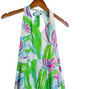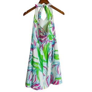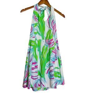 Lilly Pulitzer Ross Ring The Bellboy Tulip Halter Mini Dress White Green Size 2