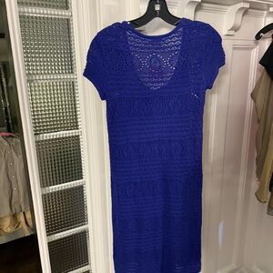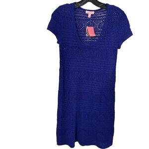 BRAND NEW with tags. Lilly Pulitzer royal blue crochet dress. Short sleeves, lined, scoop neck, knee length, cotton. Size small. See photos for measurements. MSRP $178