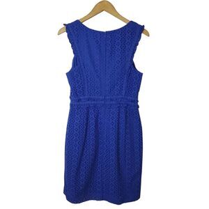 Lilly Pulitzer Royal Blue Eyelet Kaylee Shift Dress Size 6 Cotton Ruffle Sleeveless