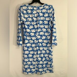 Lilly Pulitzer S Elephant Blue White 3/4 Sleeve Neck 100% Pima Cotton Dress