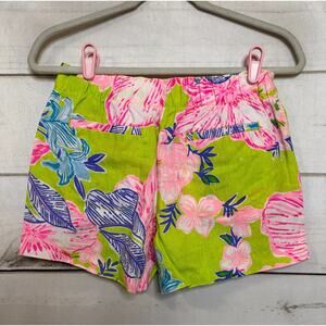 Lilly Pulitzer S Linen Shorts Neon Lime Green Floral Print Stretchy Waist Comfy