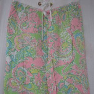 Lilly Pulitzer Pants. Small. These are the Beach Pants, in the popular print Chin Chin. All over elephant pattern. Large Lilly scribbled throughout. Wide leg. Adjustable waist. 100% Linen, machine wash. Freshly laundered with no issues stains or odors. Comes to you clean and ready for immediate wear.