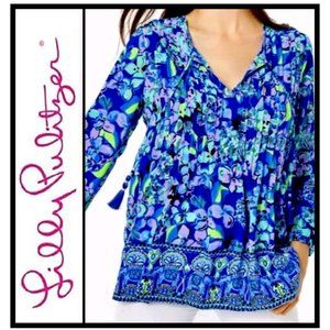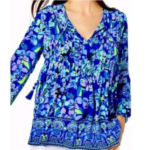 Lilly Pulitzer SIZE MEDIUM Marilina Tunic Tassels Blue Grotto Twilight Tropics
