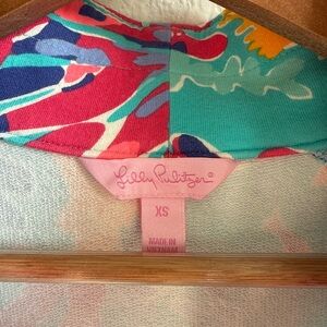 Worn maybe a handful of times, great pre loved condition. No flaws. Lilly Pulitzer SKIPPER Popover "Trippin And Sippin" Half Zip Pullover Sz: XS. Features front hand pocket, gold tone zipper with Lilly Pulitzer stamped, popover collar.