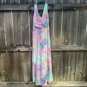 Lilly Pulitzer SLOANE MAXI DRESS Roar Of The Seas Multi Floral Coral Sz XS