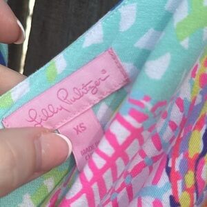 This dress, with its eye-catching multicolor palette, is sure to turn heads and make you feel confident and beautiful wherever you go. The Lilli character and the beach, flower, and colorful themes of this dress perfectly match the Lilly Pulitzer brand.