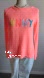 Pretty peachy/cantaloupe melon color with colorful SUNNY knit on the front.