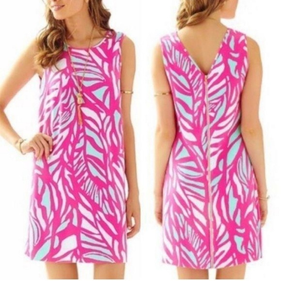 Lilly Pulitzer Sabrina Shift Dress Pink and Teal Patterned - M