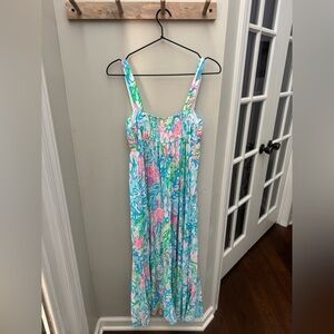 Lilly Pulitzer Sabrinah Midi Sleeveless Dress Coral Bay Blue White Pink Green