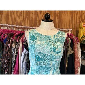 Lilly Pulitzer Safari Animal Print Lion Zebra Sleeveless VTG Dress Size 6 Green