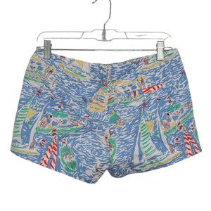 Lilly Pulitzer Womens 100% Cotton Blue Get Nauti Sailboat Beach Nautical Shorts Size 2