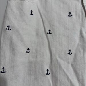 Preppy coastal style, nautical anchor print, beach resort outfit, classic summer look, casual yacht wear, lightweight cotton, high-quality Lilly Pulitzer tailoring.