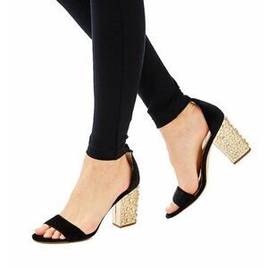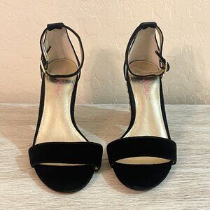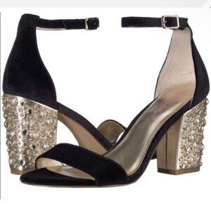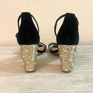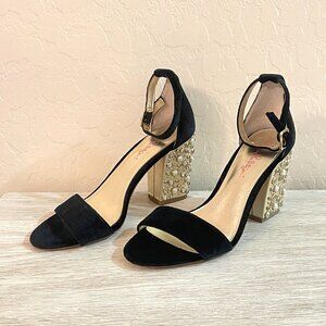 Lilly Pulitzer Sandals Amber Lynn Onyx Black Velvet Gold Pearl Crystal Heel
