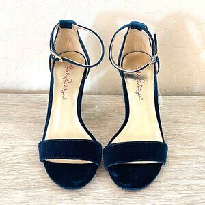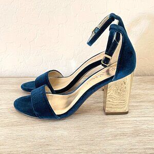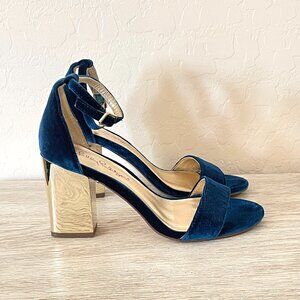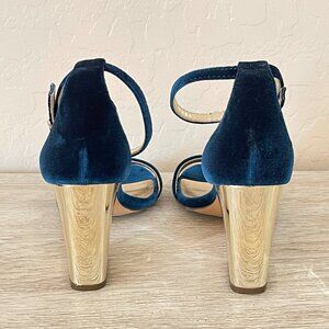Lilly Pulitzer Sandals Heels Amber Lynn 6 Blue Teal Velvet Gold Heel