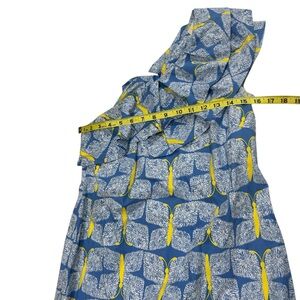 Lilly Pulitzer Sandra Dress 4 One Shoulder Blue Dandelions Ruffles Butterflies