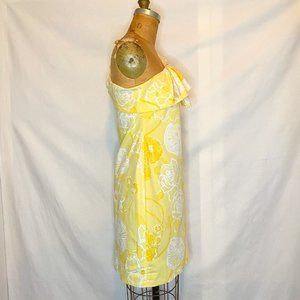 Styled with a ruffled one shoulder silhouette, this yellow print mini dress is a summertime treat! Elevated details like boning in the bodice really show the quality that goes into a Lilly dress.
