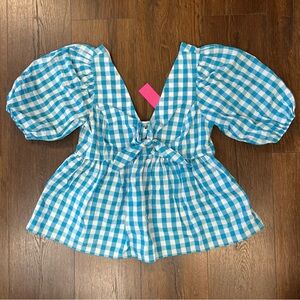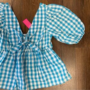 🆕 Lilly Pulitzer Sarafina Gingham turquoise oasis Babydoll Top SZ 8