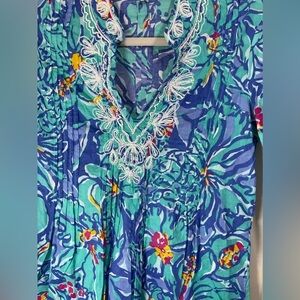 Lilly Pulitzer Sarasota Beaded Blue Iris Mai Tai Tunic Top Women’s Size XS