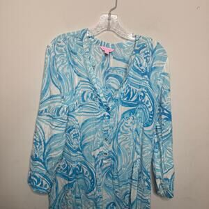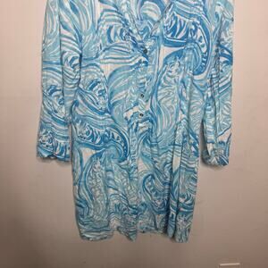 Lilly Pulitzer Sarasota Tunic Dress Blue White Swirl Print Rayon Size L