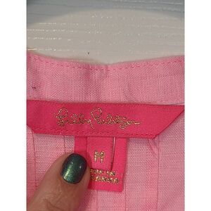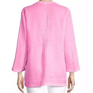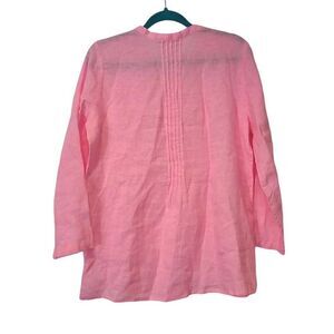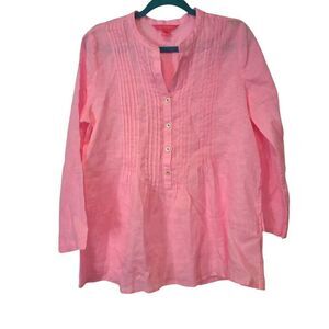 Lilly Pulitzer Sarasota Tunic Top Blouse Pink Isle, 100%Linen | Size M | EUC | MSRP $148 | Measurements Laying Flat and Unstretched: Pit to pit 20" | Length 26" | Sleeve Length 21" | Machine washable | Extra Button attached to the care tag | Please refer to the photos for the condition.
